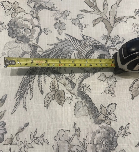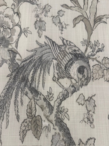 Cream & Grey Floral & Bird Linen Look Furnishing. "Renaissance"- Porter & Stone.