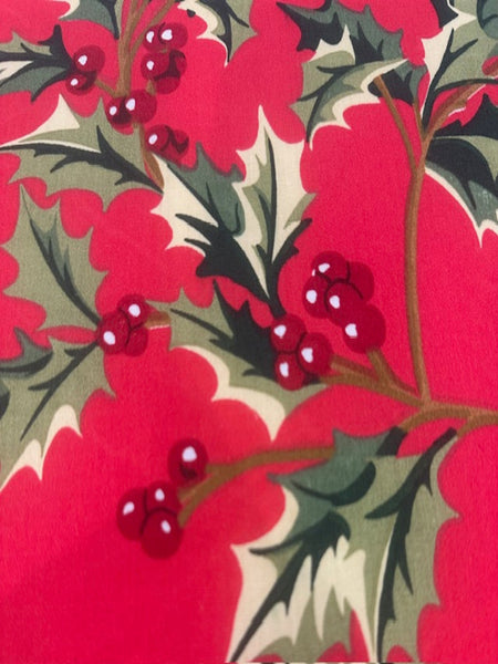 Large Christmas Holly &Berries on Red Cotton