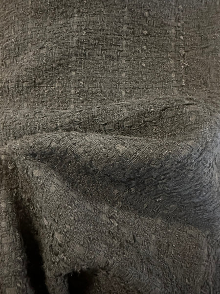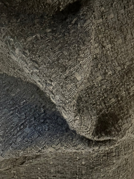 Elevate your designs with this Black Bouclé Basket Weave Fabric, inspired by iconic Chanel tailoring. Luxurious, textured, and timeless, this fabric offers the perfect balance of softness and structure. Ideal for jackets, skirts, and suits that exude sophistication and couture charm.