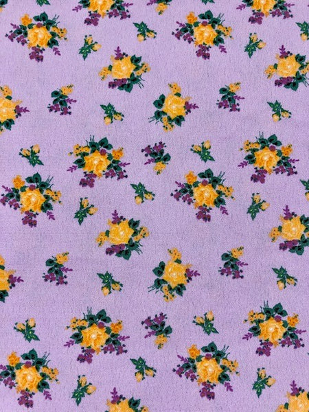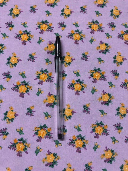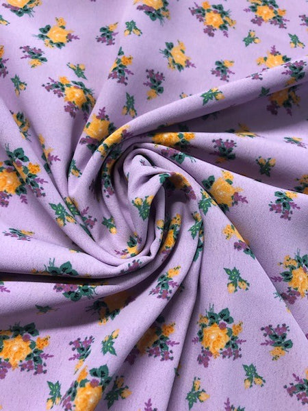 Add charm to your creations with this lavender ditsy floral fabric featuring delicate small yellow flower bouquets. Made from 100% polyester and measuring 150 cm wide, it’s ideal for stylish garment making, from dresses and skirts to blouses and tops. Lightweight, versatile, and irresistibly appealing.