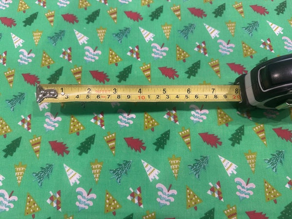 - Multicolour Xmas Trees on Lime Poly/Cotton