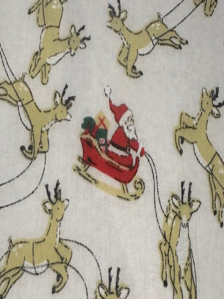 - Santa Sleigh & Reindeer on White Poly/Cotton