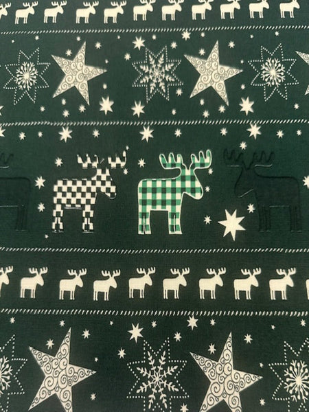 Christmas Green Scandi Reindeers on Dark Green Cotton
